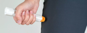 2. Jeśli pacjent wie, że jest uczulony na konkretny czynnik i że po jego zadziałaniu występuje u niego silna reakcja nadwrażliwości, zawsze powinien mieć ze sobą adrenalinę w PENIE, którą może sam lub z pomocą innej osoby, podajemy ją wtedy domięśniowo, w przednio-boczną powierzchnię uda w jego 1/3 górnej części.