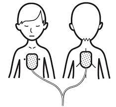 Jeśli klatka piersiowa dziecka nie mieści obu elektrod lub zachodzą one na siebie należy zastosować metodę ułożenia elektrod przód-tył – przyklejając jedną z elektrod na środku klatki piersiowej, drugą zaś na plecach, między łopatkami.
