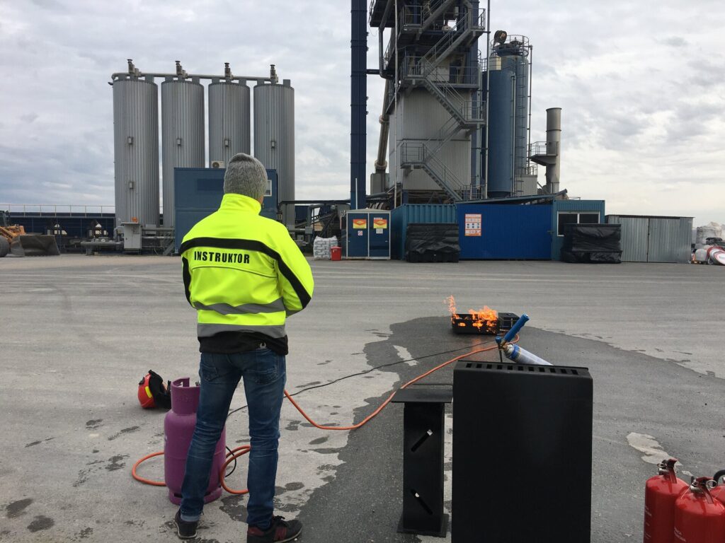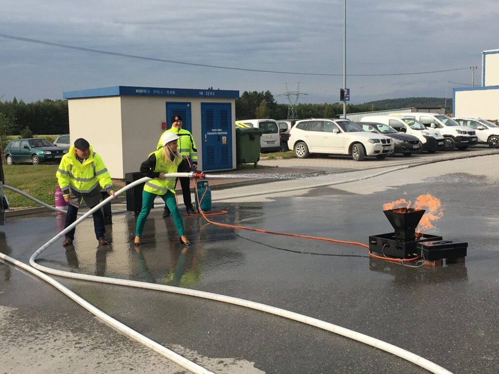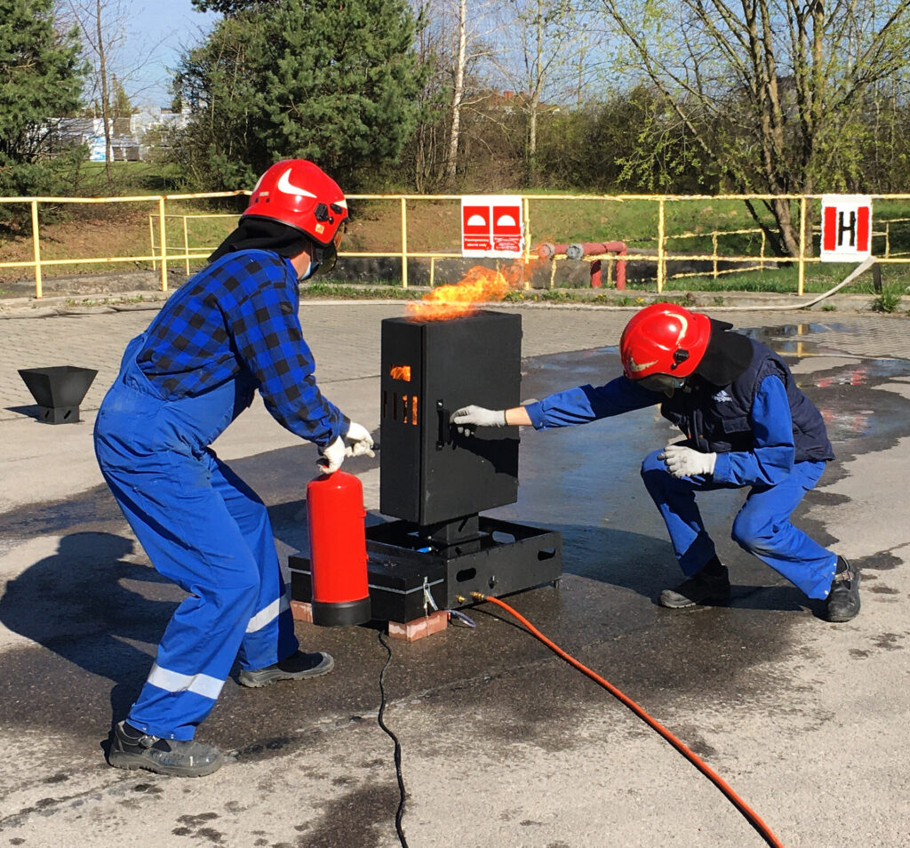 - Ćwiczenia gaszenia różnych rodzajów pożarów ciał stałych, cieczy, gazów i tłuszczów na symulatorze pożaru