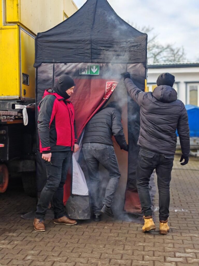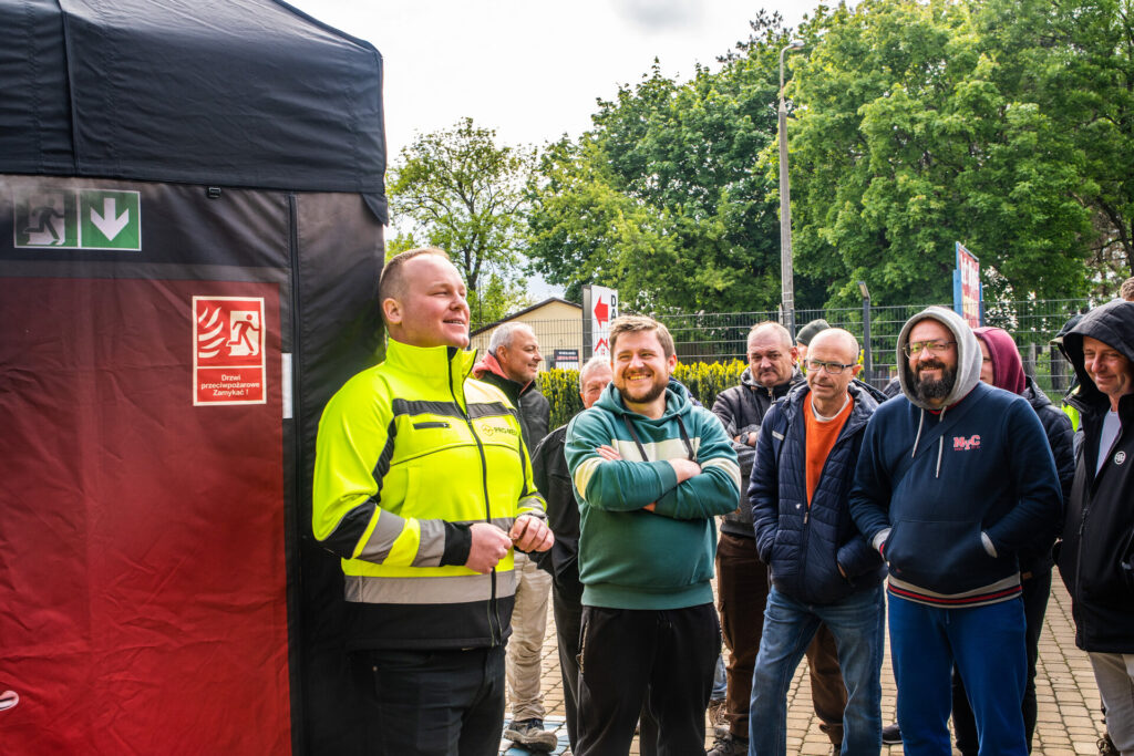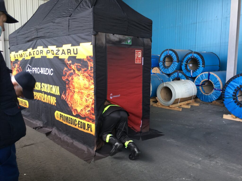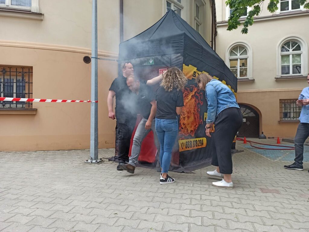 Uczestnicy mają możliwość bezpiecznie doświadczyć warunków zbliżonych do rzeczywistych, poczuć temperaturę płomieni oraz przekonać się, jak trudne może być poruszanie się w zadymionym pomieszczeniu.